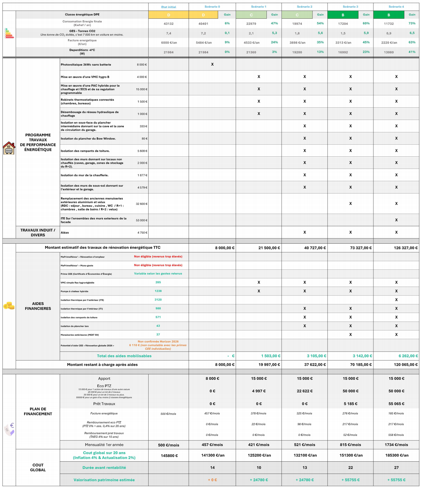Objectif : informer l'acheteur des scénarios possibles de travaux pour améliorer la performance énergétique du bien.